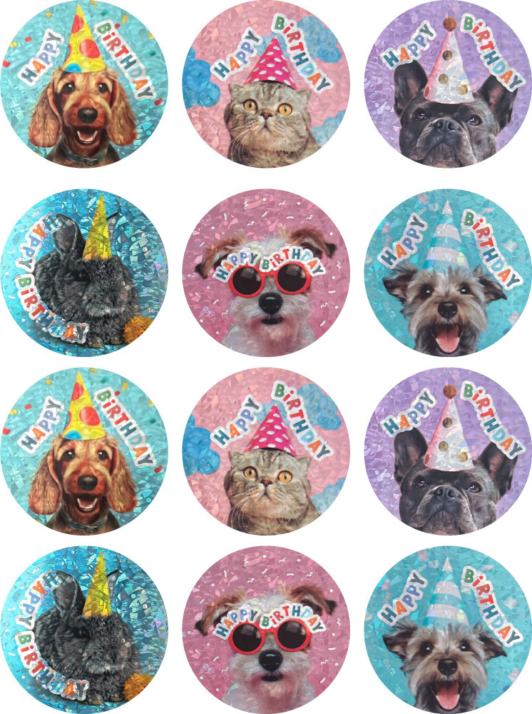 Celebrate birthdays with a touch of furry charm using these 'Happy Birthday (Pets) - Foil Photo Merit Stickers'. T