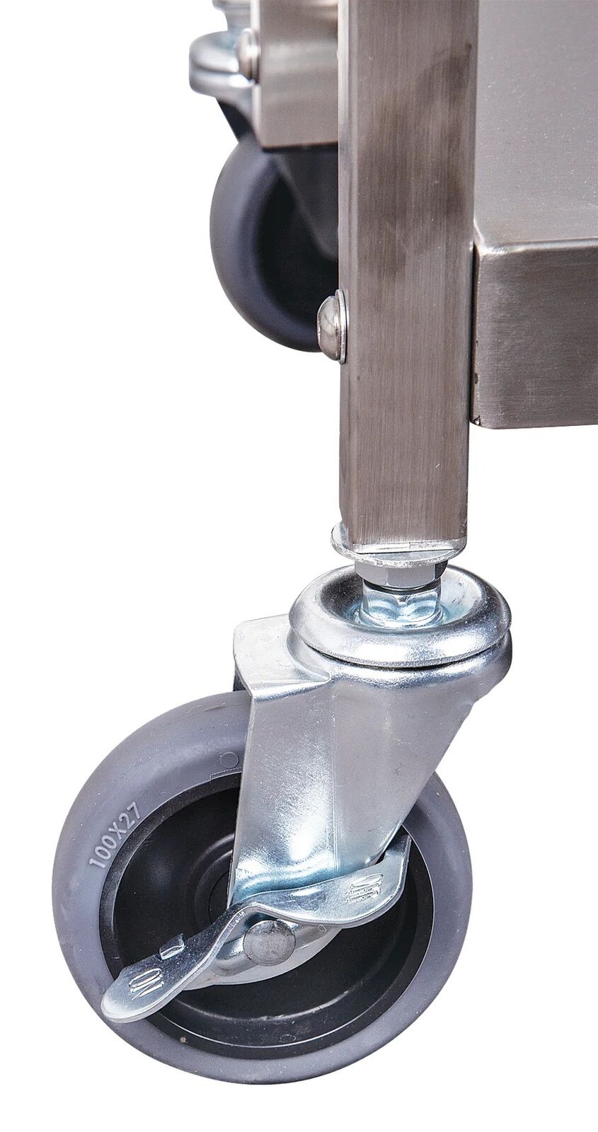 - Constructed from stainless steel (SS201), this robust trolley features shelves made from 0.8mm thick board and 1.2mm thick tubular framing, offering long-lasting strength and stability