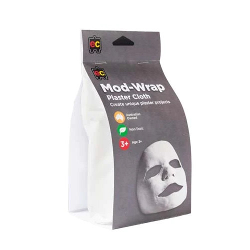 A versatile craft product that can be 'bandaged' around most forms. Plaster impregnated cotton gauze used for modelling. Cut and dip strips in warm water, then layer over one of our face mask moulds, wire armatures, etc. When dry, it can be sanded if desired and painted and sealed.