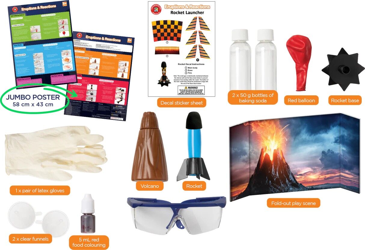 This educational action-packed kit allows kids to conduct four bubbling experiments using the chemical reaction between baking soda and vinegar.