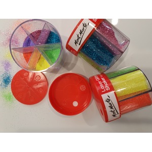 Mont Marte Signature Laser Glitter Shaker has 6 compartments with an exciting variety of ultra-fine vibrant, fluoro glitter.