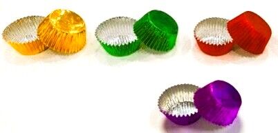 Mini foil patty pans in 4 assorted colours. Use in collage, threading and paper construction. Cut, glue and create.