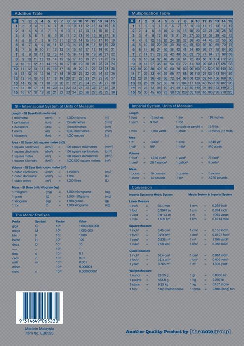 - Back cover: Mathematical and Measurement tables