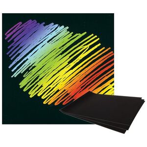 Decorate these hand shapes by scratching designs into the black surface to reveal rainbow colours underneath.