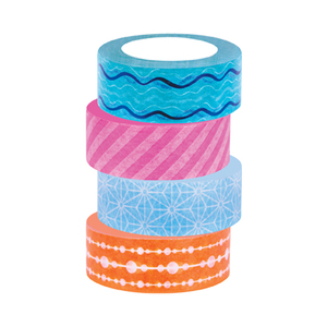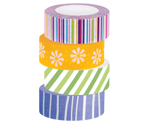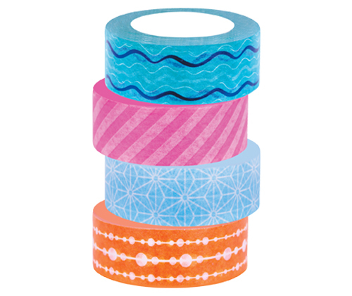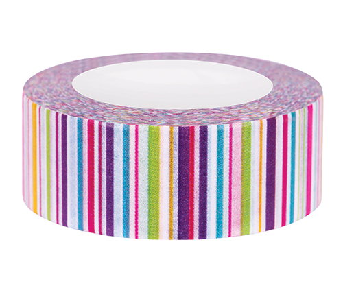 Washi tape is like masking tape – lightweight, flexible and paper-like. The tape leaves no residue and can be peeled off cleanly once applied. It can also be torn and easily manipulated without scissors or special tools. Use washi tape on a variety of surfaces including card, paper, plastic, metal, wood and ceramic. Washi tape can also be stuck to itself to create interesting pleats, strips, folds to be explored in decorative crafts.